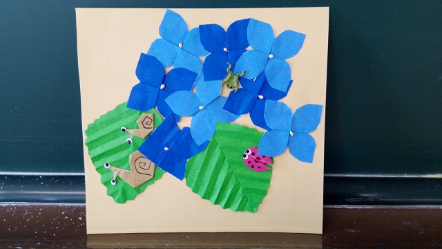 2017年6月の「ともだちひろば」2回目です。お花紙を使ったステンドペーパーをあしらったモビール制作と、リトミックと、梅雨がテーマのゲームを楽しみました。暑い日でしたね。。