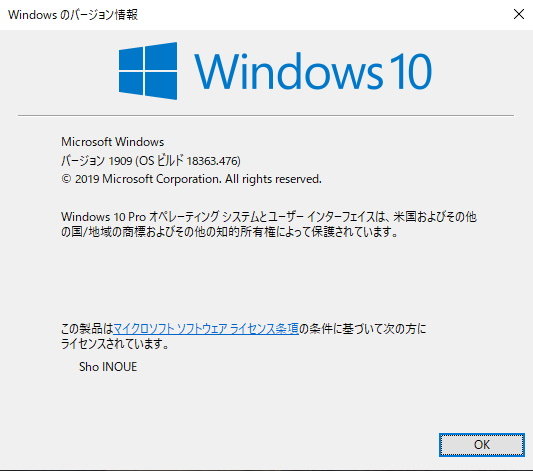 実施環境は、Windows 10 Pro バージョン 1903 です。