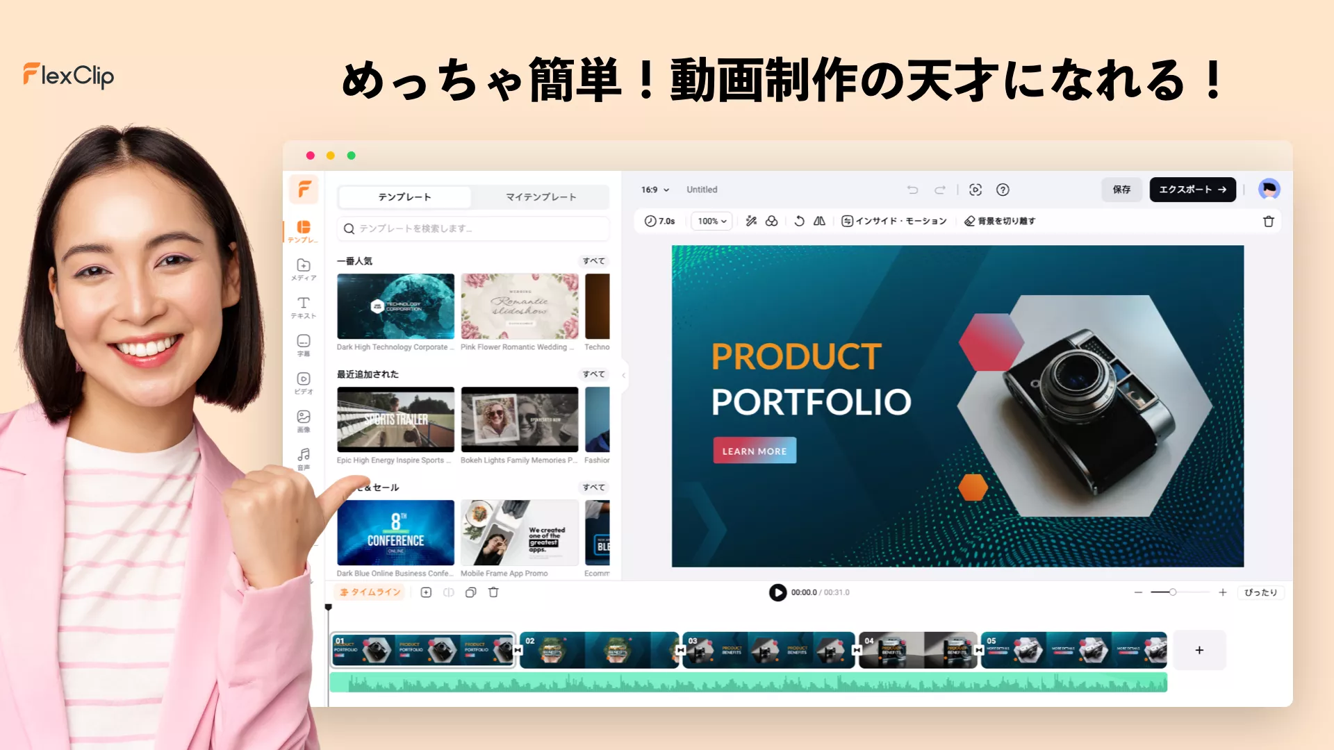もちろん、細かいことをしようとすると制限もありますが、簡単に作ることを重視すれば、FlexClipはイケてるサービスだと思います。