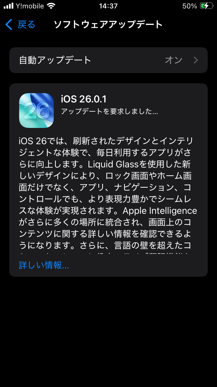 手元のiPhone SE 第2世代 を iOS 26 にアップデートできました!