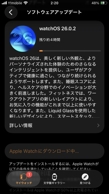 手元のiPhone SE2を更新できない問題に直面していたことで、Apple Watchも更新できずにいました。。