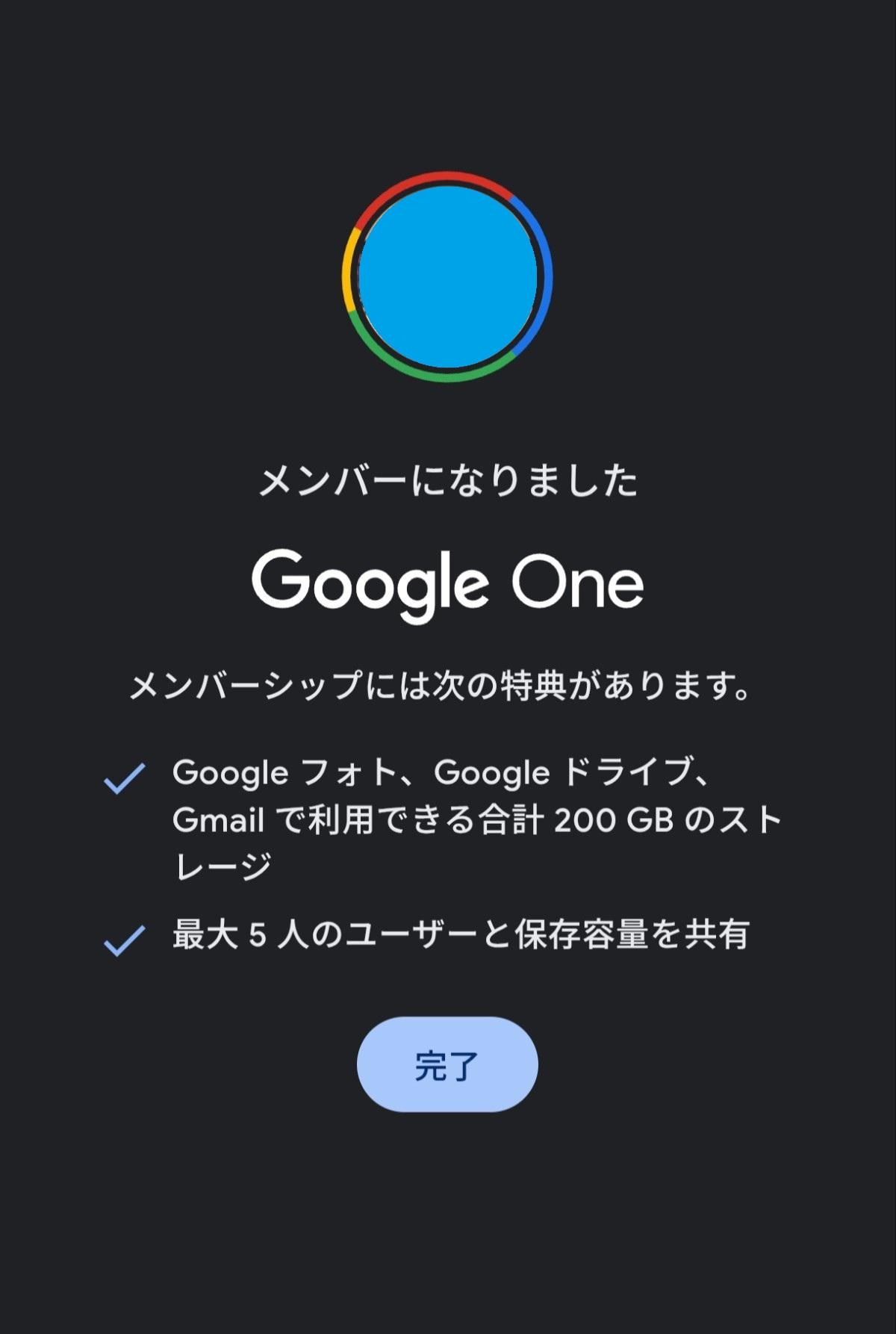 Google Oneアプリから、Google Playでお支払いするだけです。