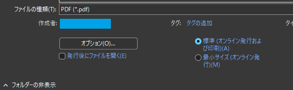 ファイルを保存するためのオプション画面が開く。