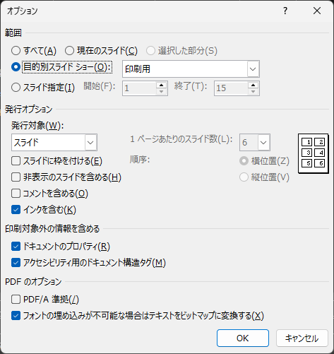 PDFのオプション