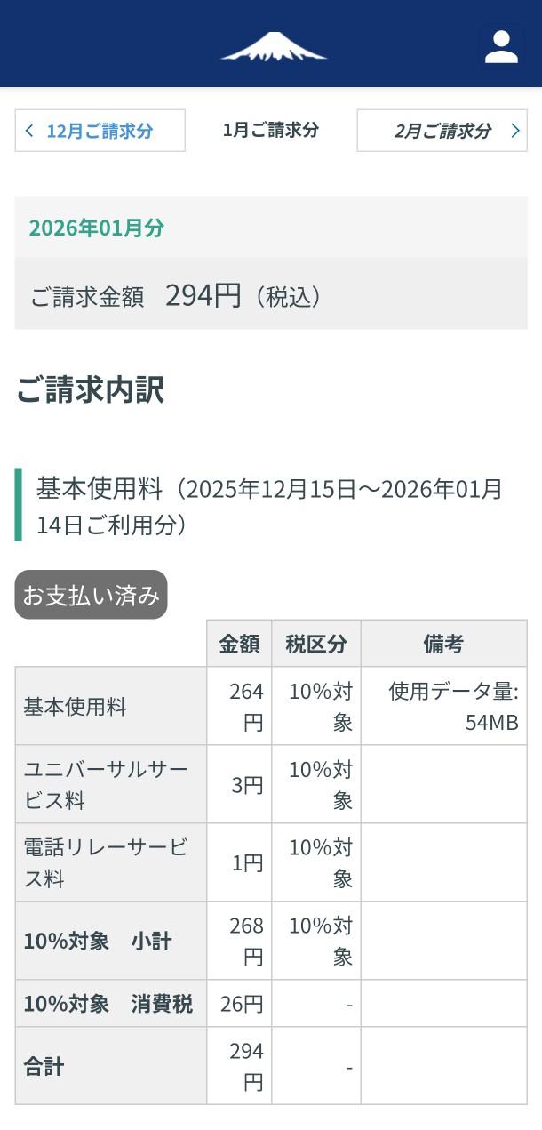 請求金額は294円になりました。