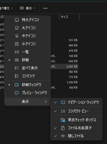 表示の「項目チェックボックス」は、ファイルを複数選択することが多い人向き。