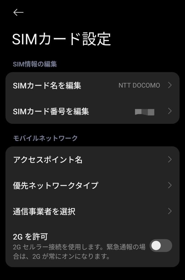 SIMカード設定のところでは、優先ネットワークタイプを指定できます。