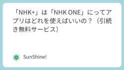 生活 「NHK+」は「NHK ONE」にってアプリはどれを使えばいいの?(引続き無料サービス) 2025年10月1日から「NHK ONE」が始まって課金されるようになる!って話があったが、既存の受信料課金勢は追加課金なし。アプリは変更。 2025.10.02 SunShine! 生活